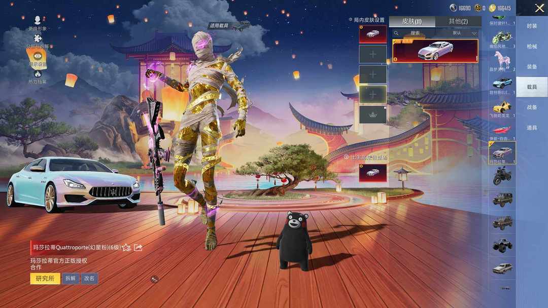 装备描述:速玩号!5神装-57粉装-35特效枪-11载具-25粉色飞行器-19王牌印记-328套装-420枪皮 【红色载具】:玛莎拉蒂Quattroporte(幻星粉)(六级),保时捷911 敞篷版(小暴龙)(三级),保时捷918 Spyder(玺耀绿)(一级) 【红色神装等级】:魔童闹海-哪吒(一级),精灵之光-露米娜(一级),墨龙九天-敖渊(一级),镜域双华-欧若拉(一级),沙丘之主-图卡盟(六级) 【红色角色神装】:魔童闹海-哪吒,精灵之光-露米娜,墨龙九天-敖渊,镜域双华-欧若拉,沙丘之主-图卡盟 【热门品类】:粉装-梦幻火箭,粉装-童趣迷兔,粉装-缤纷油彩,套装-浪漫天命,套装-胖达团团,套装-胖达圆圆,套装-龟仙人,套装-潮萌小黄鸭,套装-暗影哥特,套装-浪漫波比,套装-粉红小猪,套装-糯粉咩咩,套装-软软马卡龙,角色-8号机,套装-红熊茄茄 【粉色套装】:粉装-深海曼妙,粉装-甜心巧克力,粉装-宝贝奶油派,粉装-天使彩虹糖,粉装-梦幻火箭,粉装-金属狂野,粉装-缤纷油彩,粉装-放客神游,粉装-星空之魅,粉装-花间之火,粉装-冰霜白皇,粉装-童趣迷兔