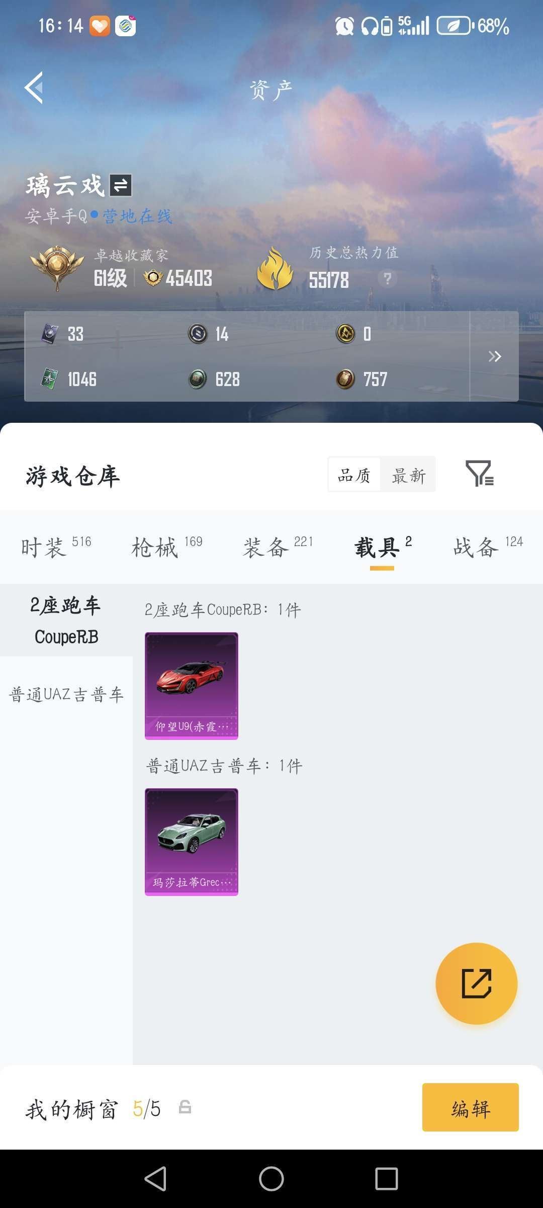 2辆车皮,五个升级枪,5个粉装,还有其他的角色皮肤