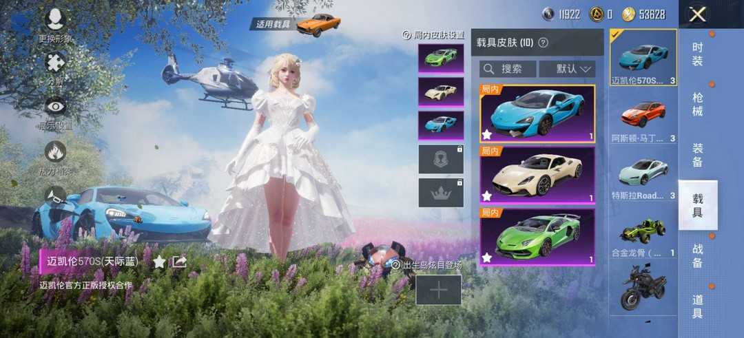 满级路特斯宾利敞篷跑车迈凯伦玛莎大话西游盖世英雄⭐飞机12载具15粉特效枪