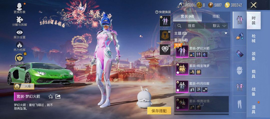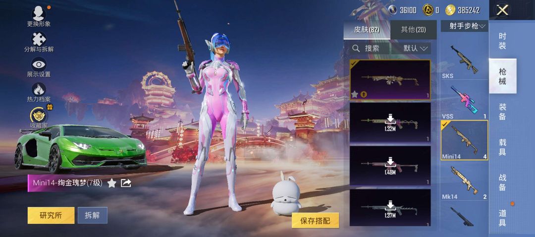 四套粉装 火箭少女 三辆兰博基尼 一把七级枪 回归账号强度低