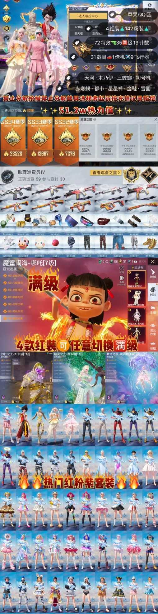 神豪公主/满艾丽娅哪吒图卡盟老101/满素材/52万热力40把满级枪/13台满级车/全部天花板