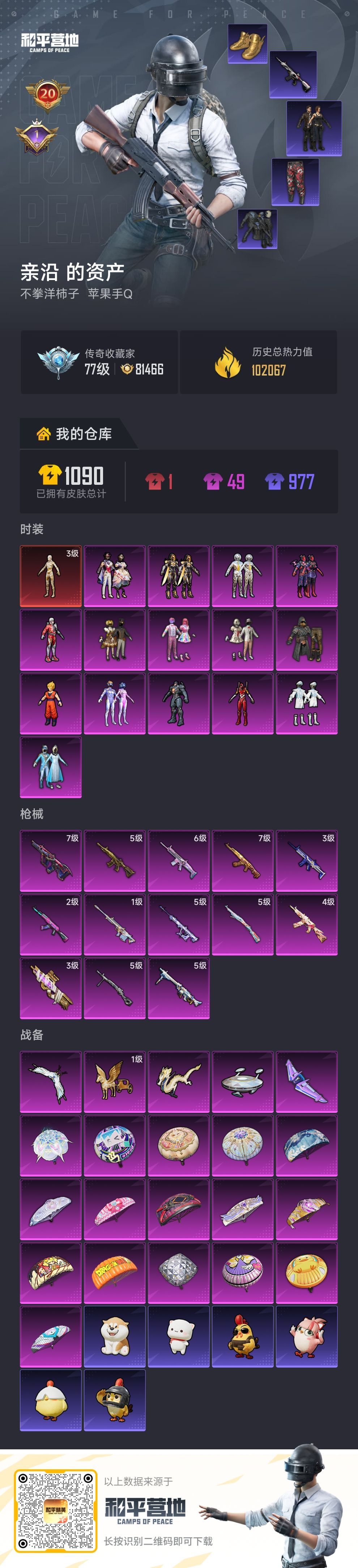 装备描述:1红15粉13枪 20印记战神框 3级图卡盟 雪国 红螳螂 都市赤蝎金鞋 天网 极限特训 红眼罩 巧克力 新101 萌熊背包 猫包 星际漫游M4 3级沙丘之主P90 7级星之彼岸AUG 6级甜心宝贝ak