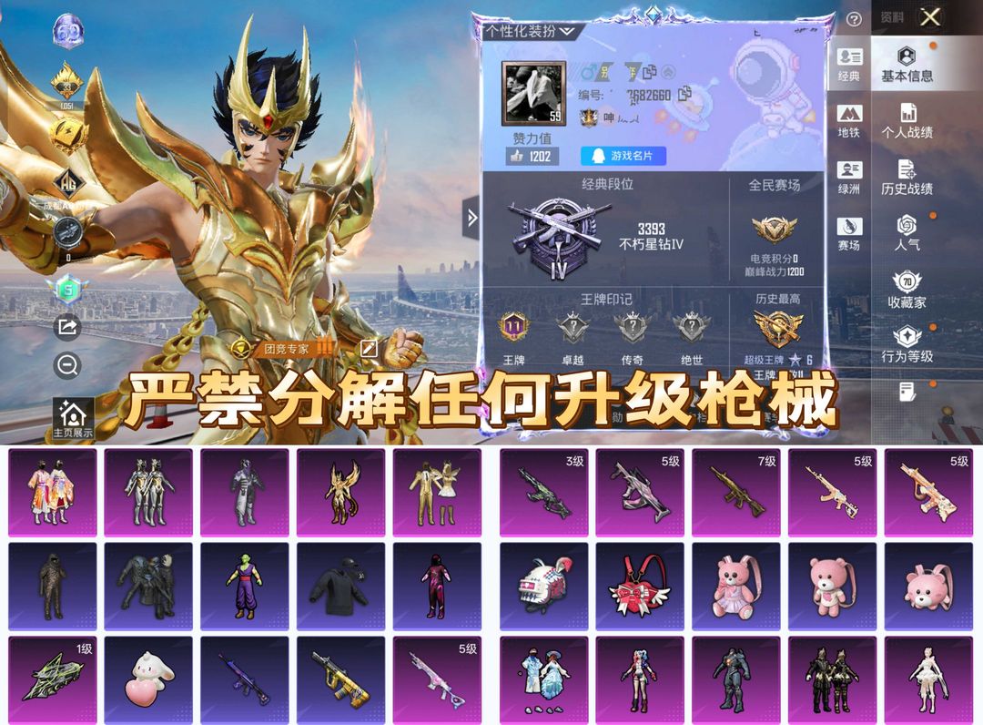 地铁满天赋/暗夜之虎/都市猎人/粉熊背包/幽焰骑士AK/战队服/炫金战神/9级特效枪