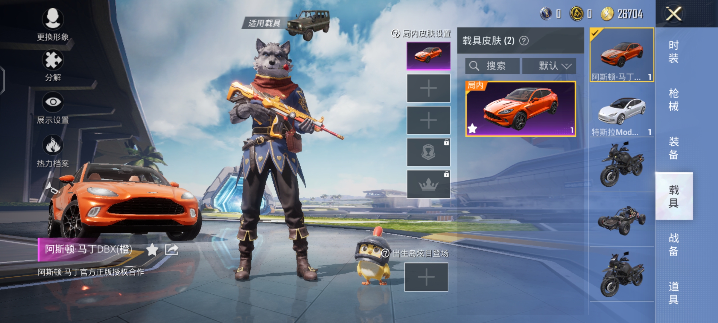 装备描述:2载具♥阿斯顿马丁♥特斯拉♥滑板小狐♥烈焰拳霸♥童话森林♥好奇恐龙♥神秘黑猫♥