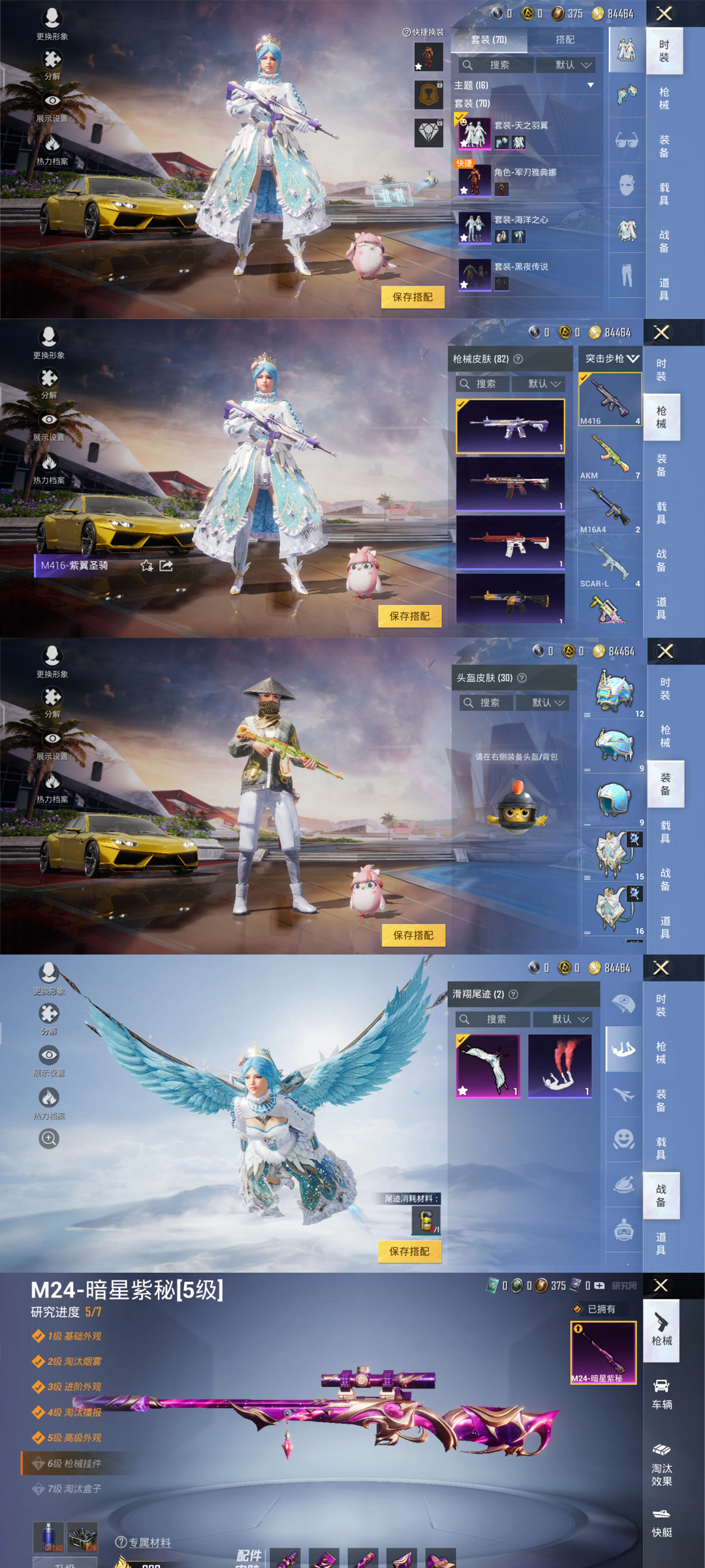 装备描述:1载具♥1特效枪♥金色♥兰博基尼♥天之羽翼全套♥军刀雅典娜♥暗星紫秘♥海洋之心♥