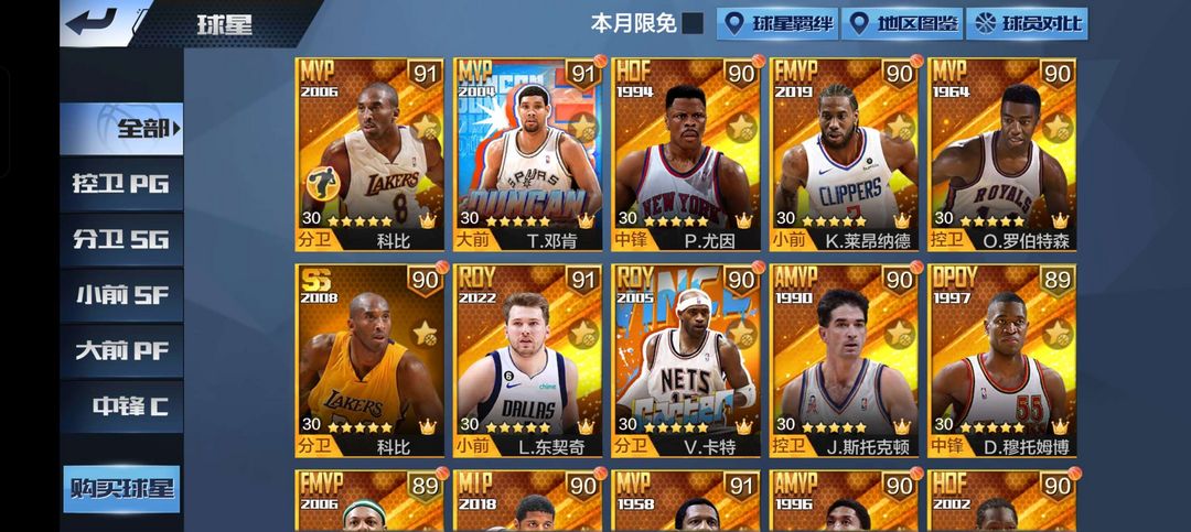 【可排位】先看描述!!三天三硬满配二专狂舞科,曼巴科,077东契奇,硬汉邓肯大虫卡特,巨多点券