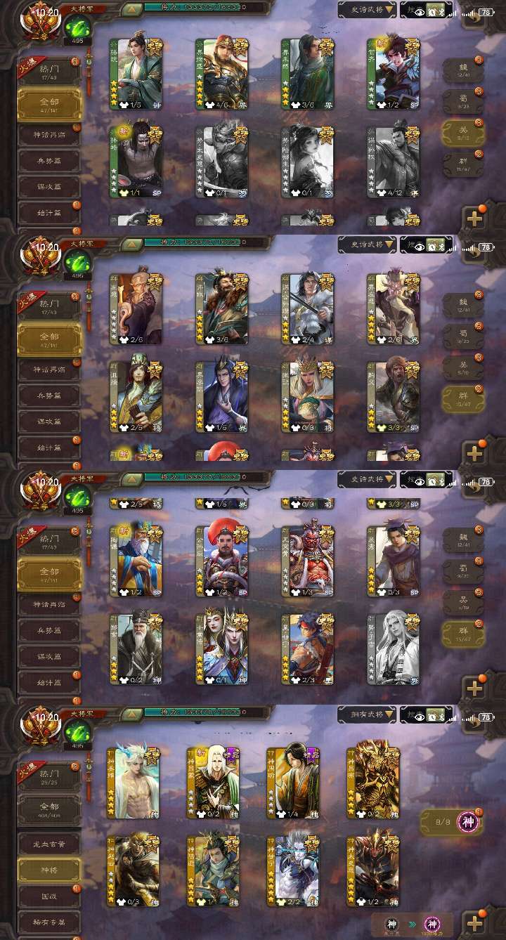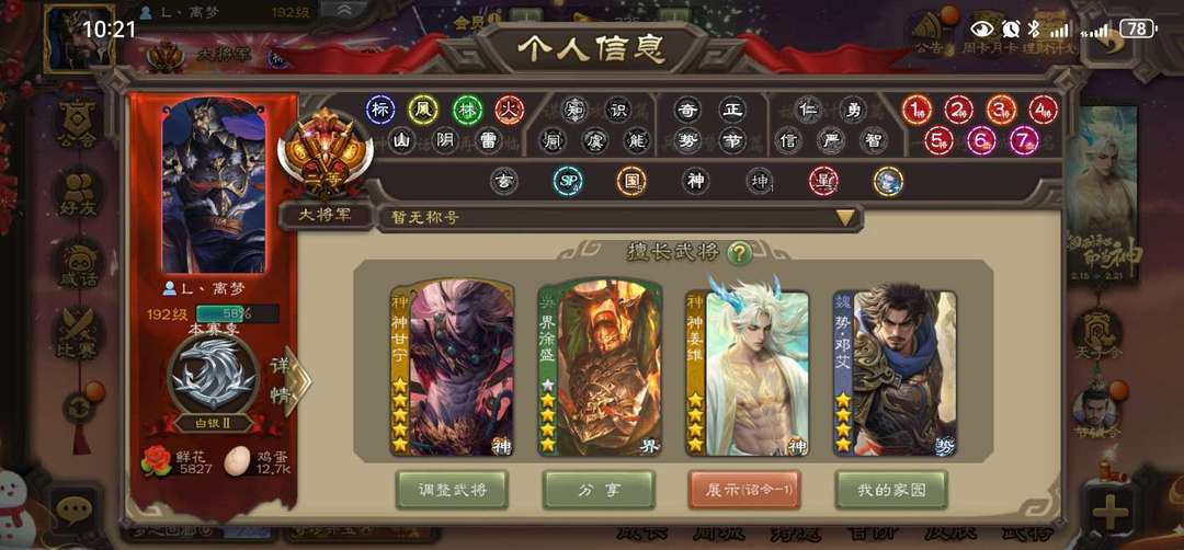 限制: 租号2次及以上 |装备描述:官方二等大将军,三卡齐全。 玉龙神姜维 玉龙势邓艾 五星战破无J动神甘宁 十常侍 马年春节动曹操 回廊动大宝 回廊动许攸 裴秀等47史诗二等大将军。