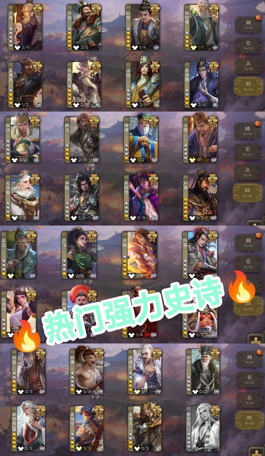 有卡♋双形态司马昭曹髦♋满4至臻双形态神郭嘉❤️杜预❤️界钟会❤️文鸯♏神司马懿✨回廊谋黄盖谋关羽