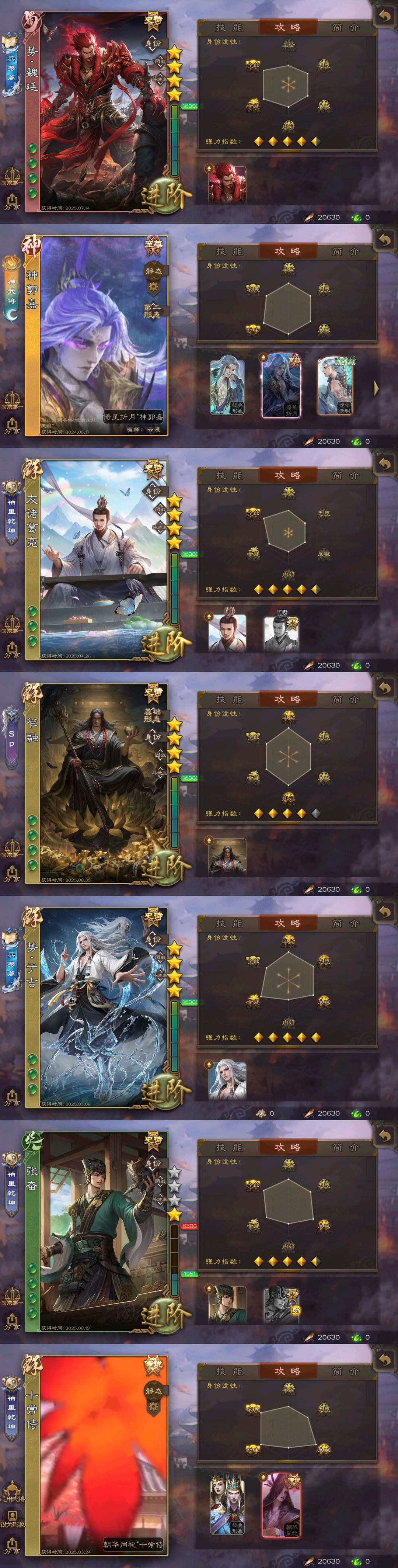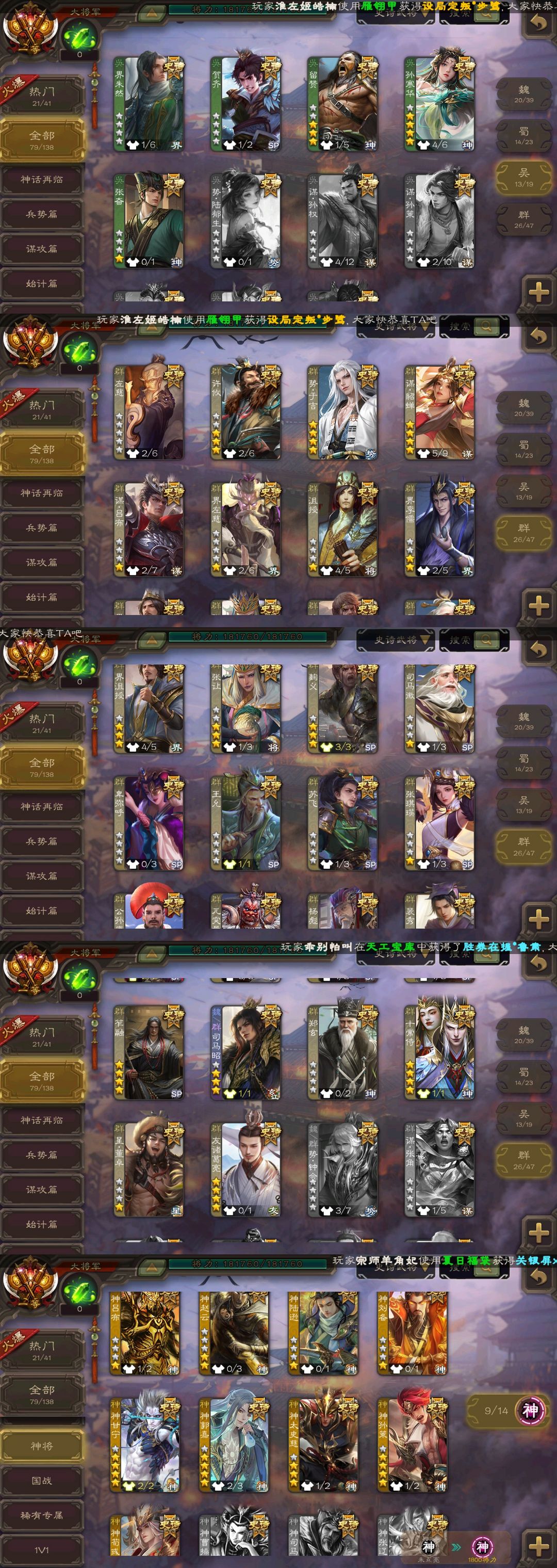有手气卡✨80史诗✨神姜维✨势魏延笮融张奋✨回廊十常侍✨双至臻神郭钟会✨动态文鸯神甘新司马✨势太史
