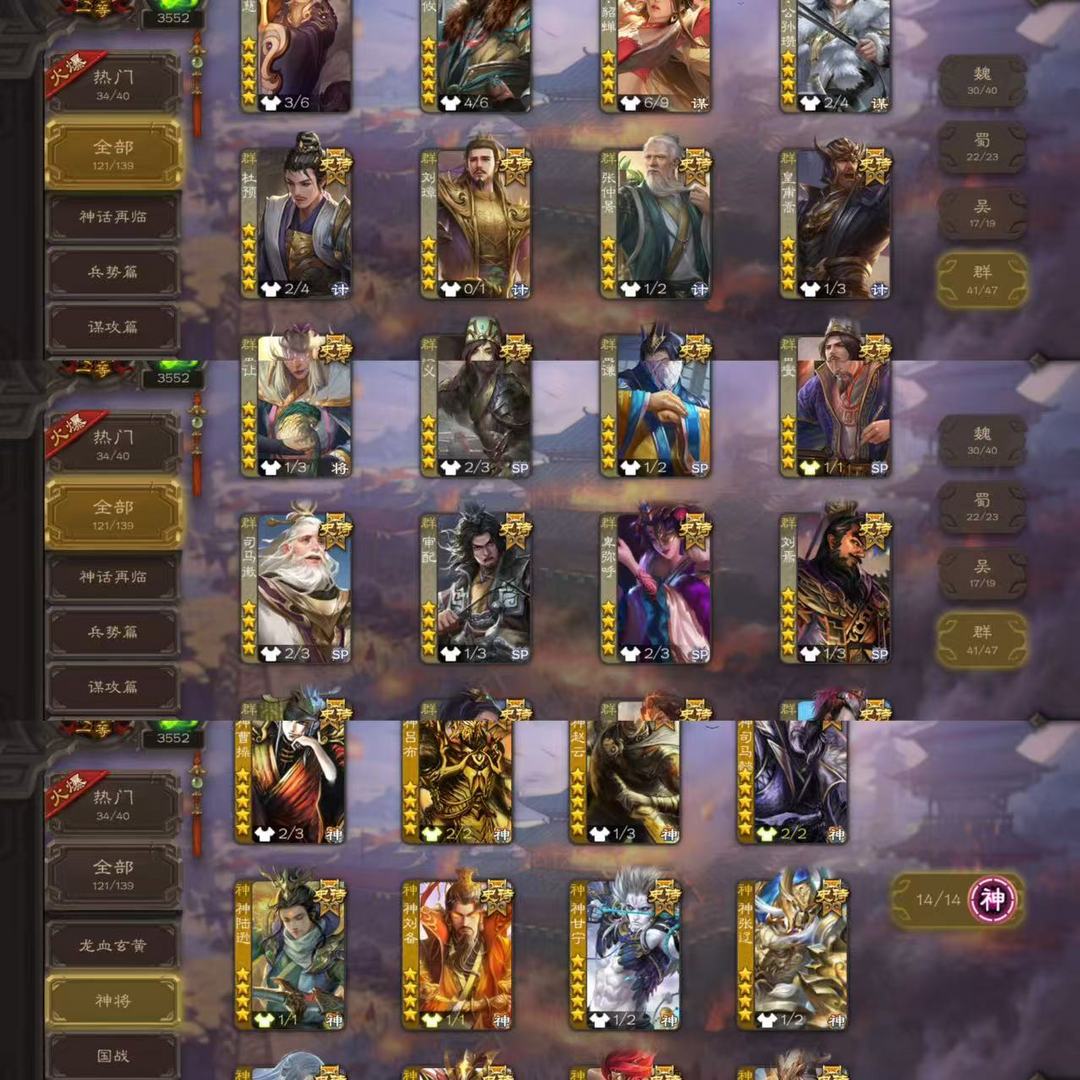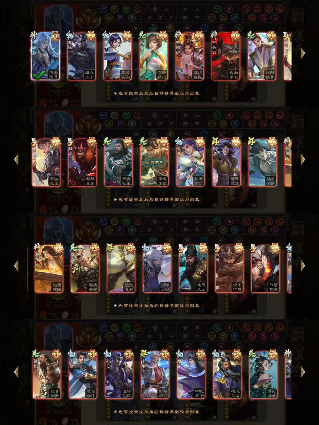有卡122史诗一等大将军⭕神姜维刘焉曹髦友诸葛亮神荀彧神郭嘉神司马懿⭕文鸯谋曹丕神曹操神孙策神鲁肃