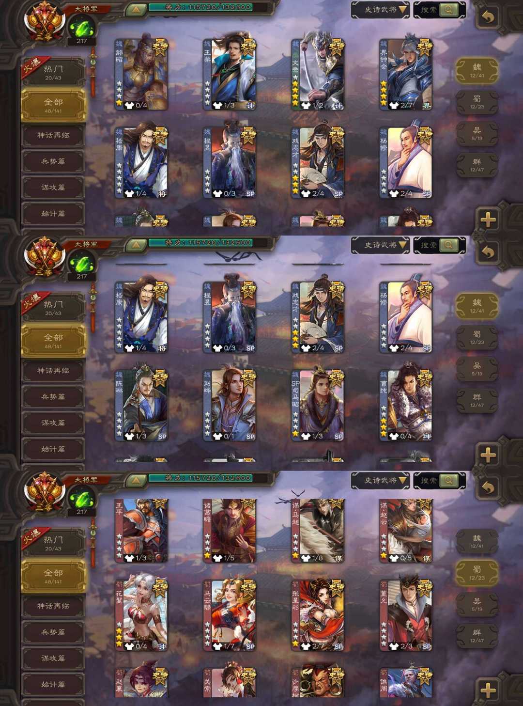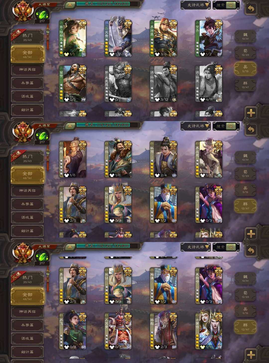 装备描述:新品大将军四权一最新权一神姜维/军八皇帝动态神荀彧/动态神甘宁/朝华同袍动态十常侍/潜蛟觊天动态界钟会/动态神孙策/动态文鸯/动态神太史慈/动态杨彪/动态杜预/冠绝天下神吕布等48史诗武将