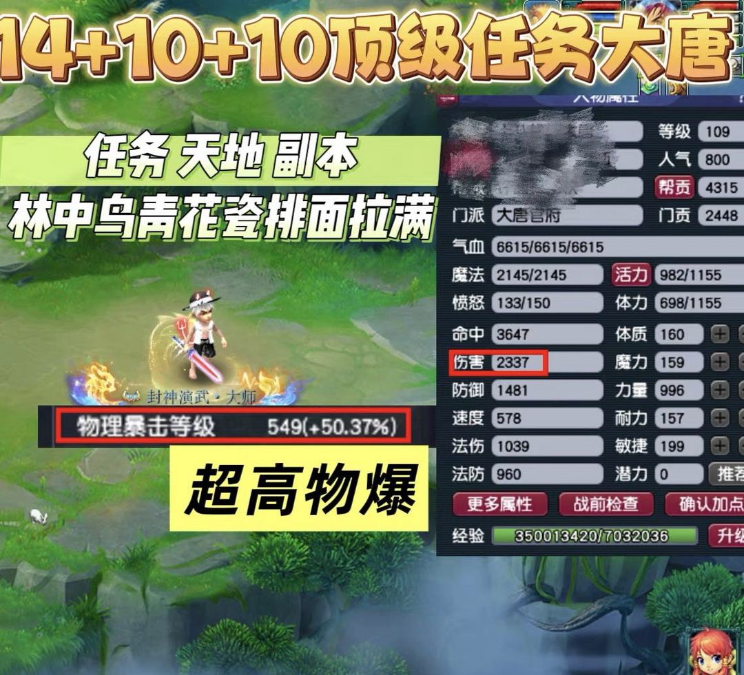 ✨梦幻西游租号✨ 109无级别物爆大唐⭐绝版青花瓷⭐50%物爆几率⭐个性宝宝
