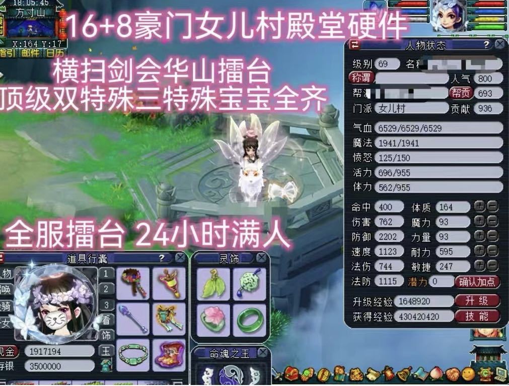 ✨梦幻西游租号✨ 69无级别16+8女儿村⭐擂台单挑无敌⭐双特殊宝宝