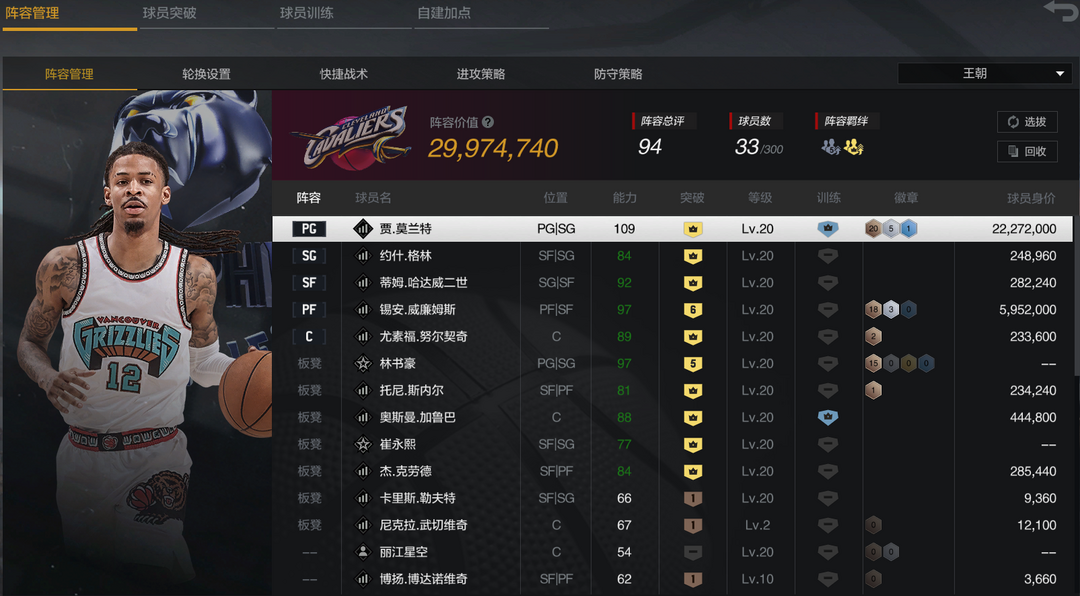 限制: 租号1次及以上 |装备描述:【满突满训贾莫兰特】枪王莫兰特,炸裂扣篮,6锡安带王朝阵容 可以打排位赛,街头段位:角色球员,王朝段位:职篮新秀 信誉分:100,更新时间:12.24 请勿消极游戏、强退游戏等扣罚信誉分行为,最后几分钟请勿再开始排位或者匹配,希望您开一把自定义,感谢您的配合与理解