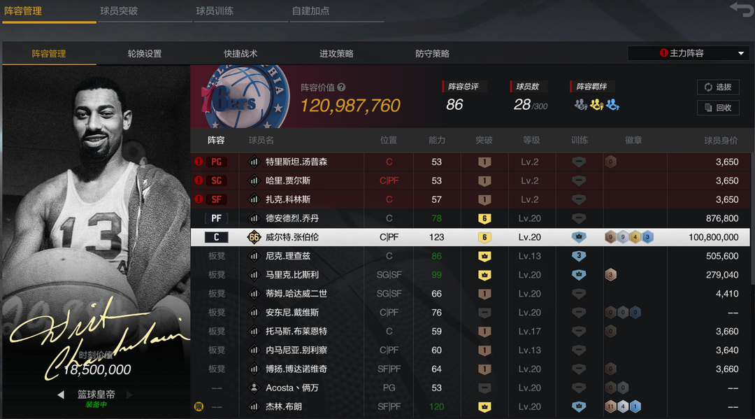 限制: 租号5次及以上 |装备描述:【6突66威尔特张伯伦】篮球皇帝张两万带双时刻 可以打排位赛,街头段位:全明星,王朝段位:角色球员 信誉分:100,更新时间:12.24 请勿消极游戏、强退游戏等扣罚信誉分行为,最后几分钟可以开一把自定义,谢谢理解