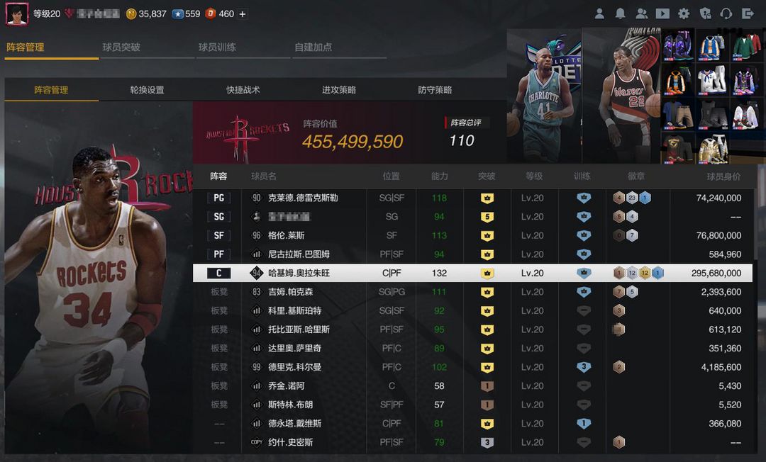 4亿阵容 10突大梦奥拉朱旺|格伦·莱斯|滑翔机德雷克斯勒,精品王朝体验