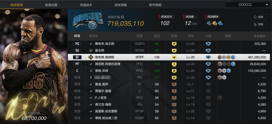 限制: 撤单率<50%才可租用此帐号装备描述:【10突双时刻老詹】【10突14邓肯】【5字母哥】】【天神下凡】【世纪翻盘】