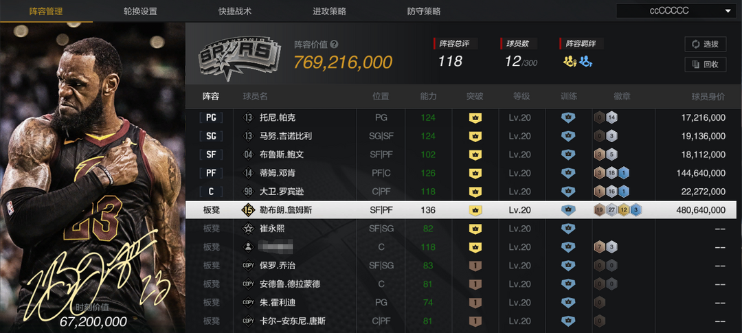 租4送1租6送2角色名:14.2 双时刻詹老马刺