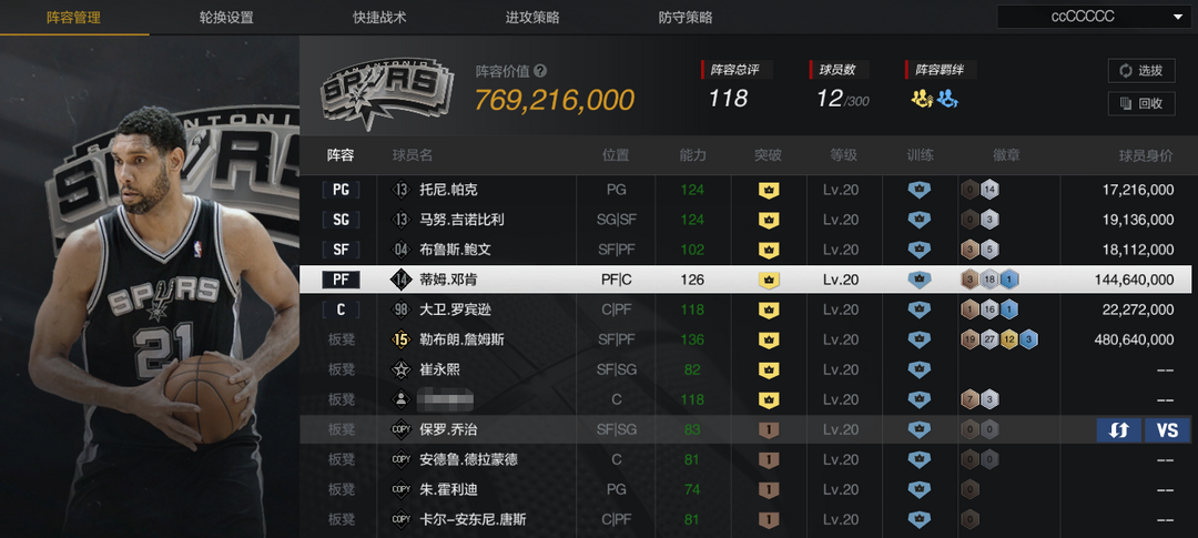 限制: 撤单率<50%才可租用此帐号装备描述:【10突双时刻老詹】【10突14邓肯】【10突老帕克/拉奥妖刀/鲍文/上将】