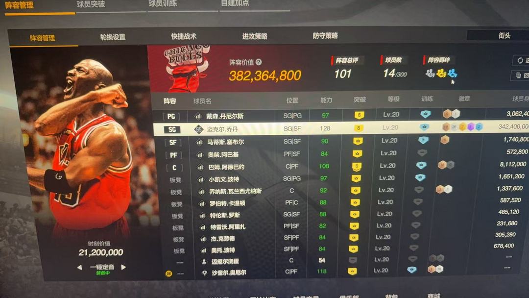 装备描述:6突乔丹加时刻加阿德巴约加丹尼尔斯带队