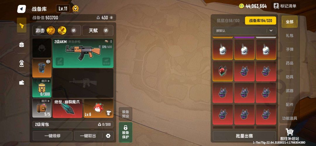 装备描述:香肠派对美味值73万,升级枪全部有,各种直购皮肤, 枪皮 也都有, 摸金模式已经完成季票, 拥有大量6级枪甲,只要不开挂,可以随便使用。