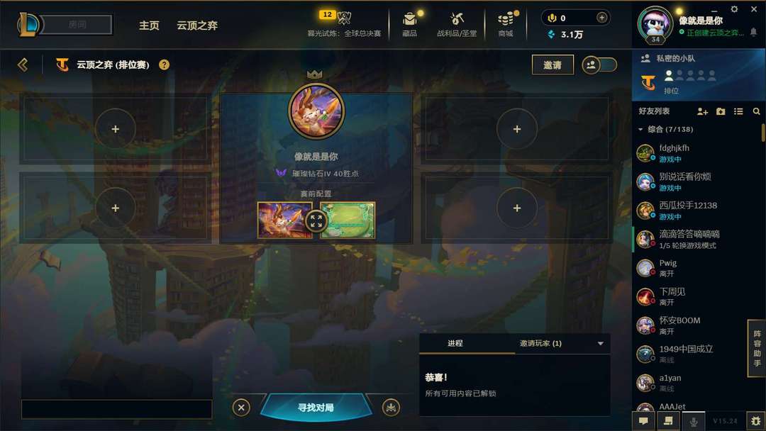 装备描述:云顶号,可以排位 欢迎租借 可能需要yanzheng,麻烦多试几次 如急需+zhw20249789 麻烦了!