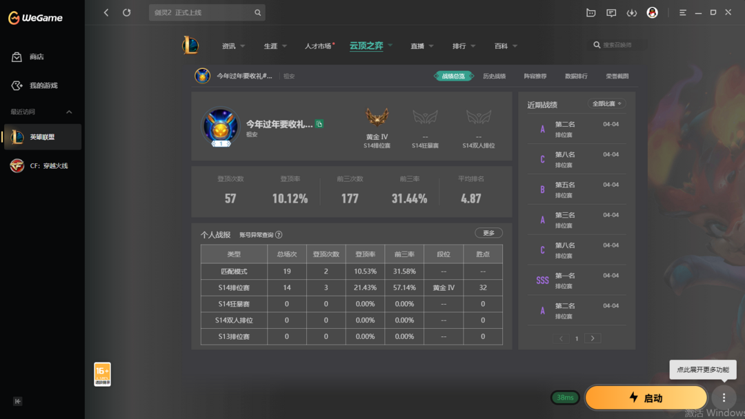【祖安】云顶之羿【S16铂金号】适合开黑垫分使用【翡翠黄金铂金可排】