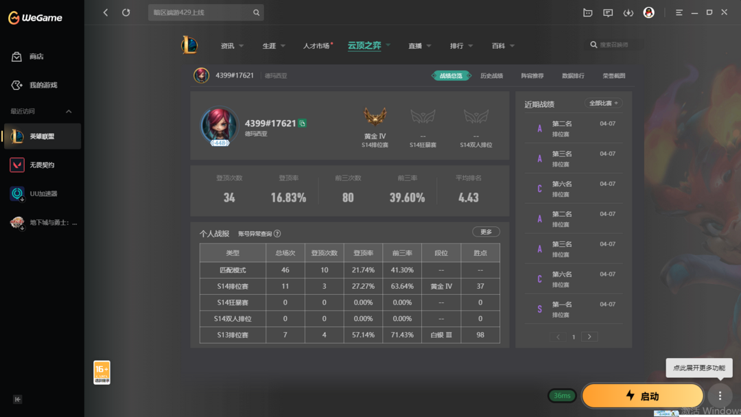 【网2德玛西亚】云顶之羿【S16铂金号】适合开黑垫分使用【翡翠黄金铂金可排】