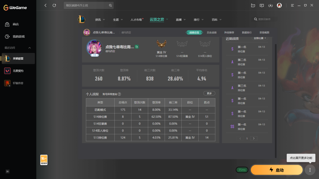 【德玛西亚云顶之羿【S16黄金号】适合开黑垫分使用【白银黄金铂金可排】