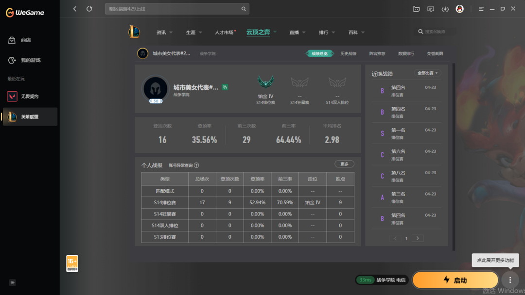【电6战争学院】云顶之羿【S16黄金】适合开黑垫分使用【白银黄金铂金可排】