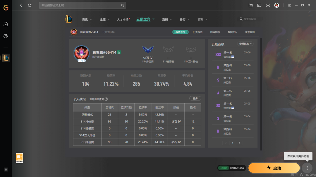 【网1比尔吉沃特】云顶之羿【S16铂金号】适合开黑垫分使用【黄金铂金翡翠可排】