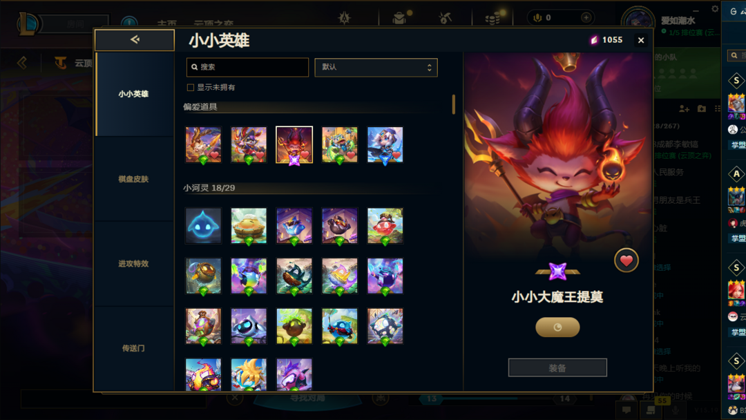 【艾欧尼亚】【可排位铂金】小小大魔王提莫+甜筒怒角+永恒静尾+棋牌6个+小小英雄超多+多赛季云顶号