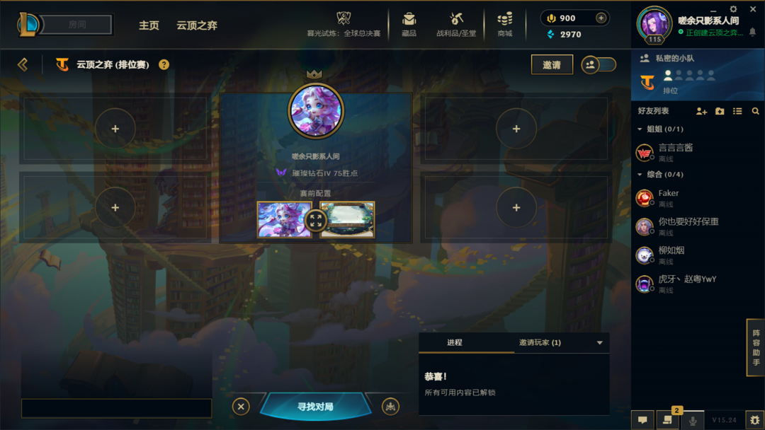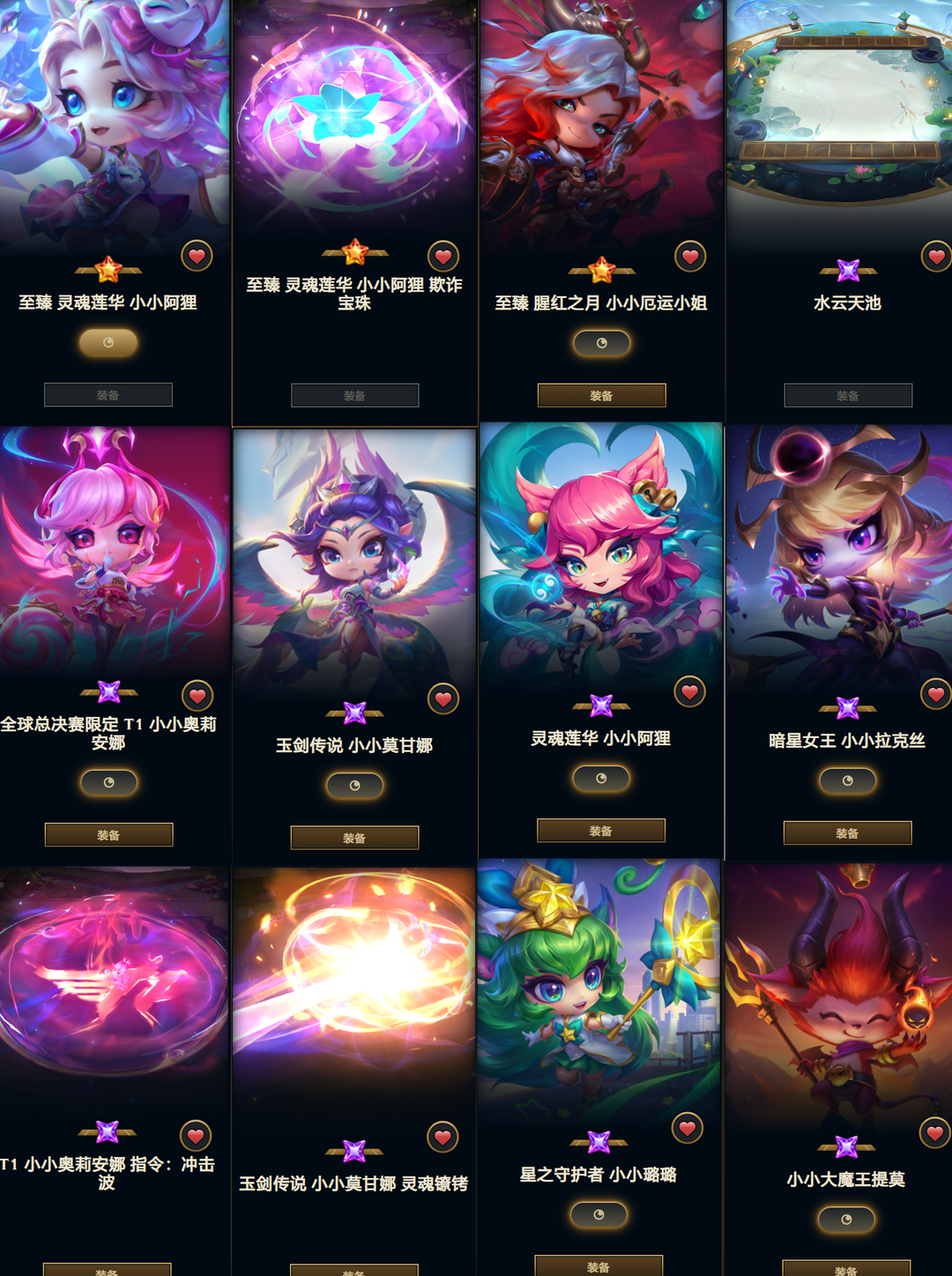 装备描述:全英雄 推荐大乱斗、云顶之弈(可排位)模式(峡谷无段位慎选)。双至臻小小英雄 其余若干神话级小小英雄。棋盘:水天云池。女玩家首选!若干 配套臻彩 与 至臻 皮肤适合大乱斗、峡谷(匹配)游玩
