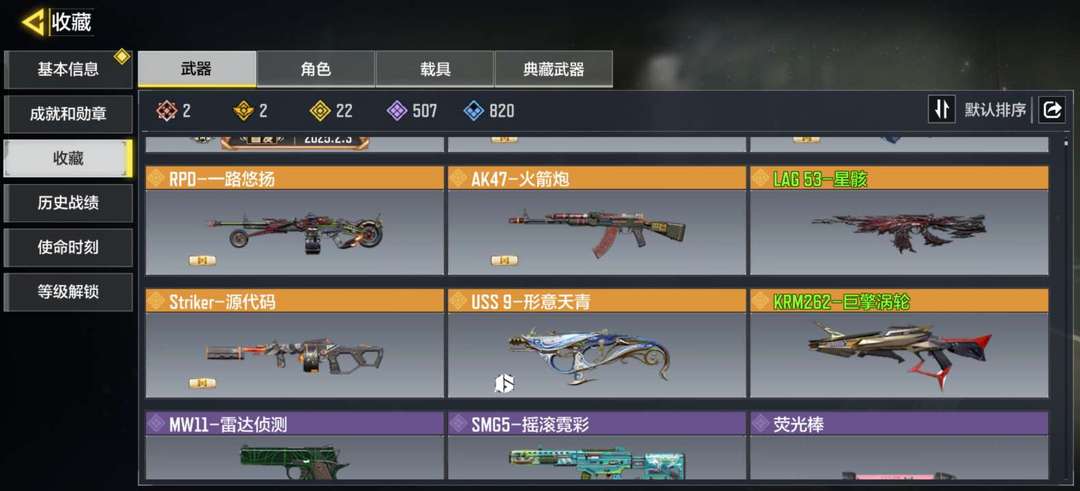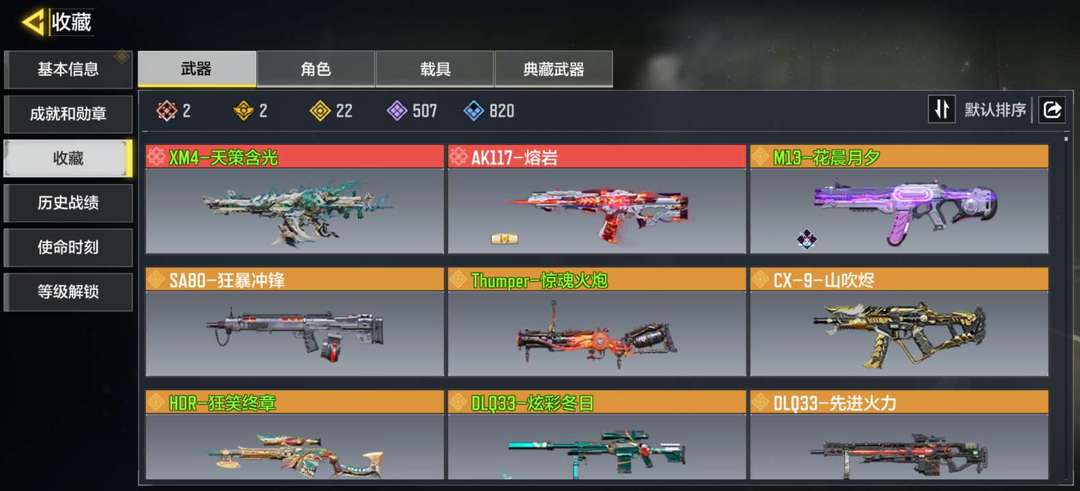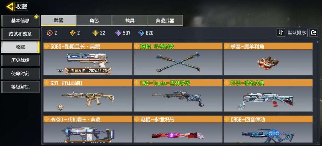 装备描述:2神话:天策含光,熔岩 22传说:狼狙,先进火力,圣诞狙,巨擘涡轮,花晨月夕,街机霸王典藏,形意天青等