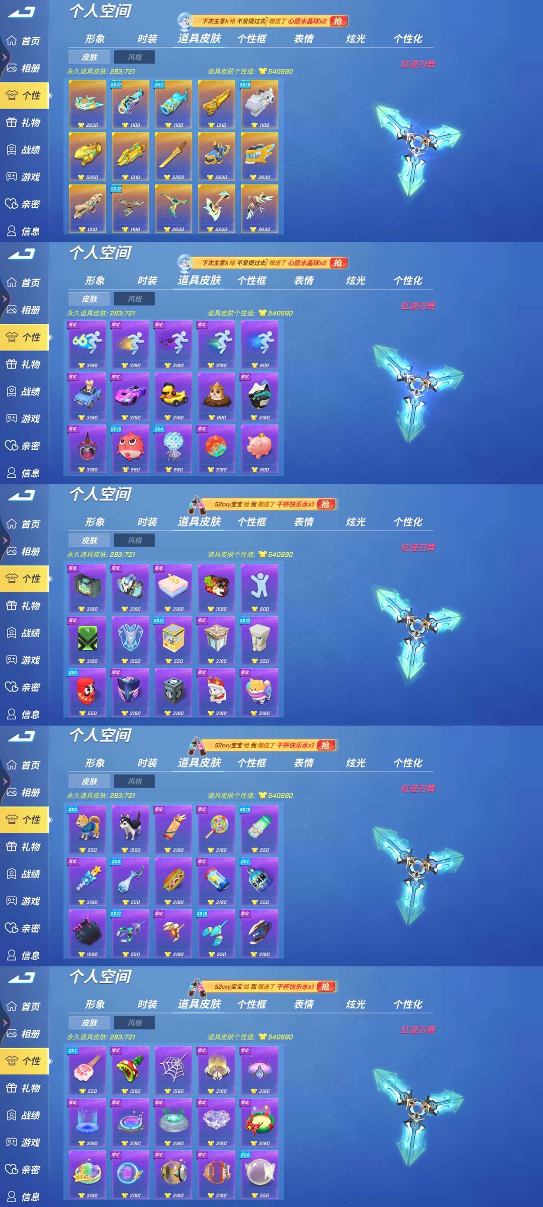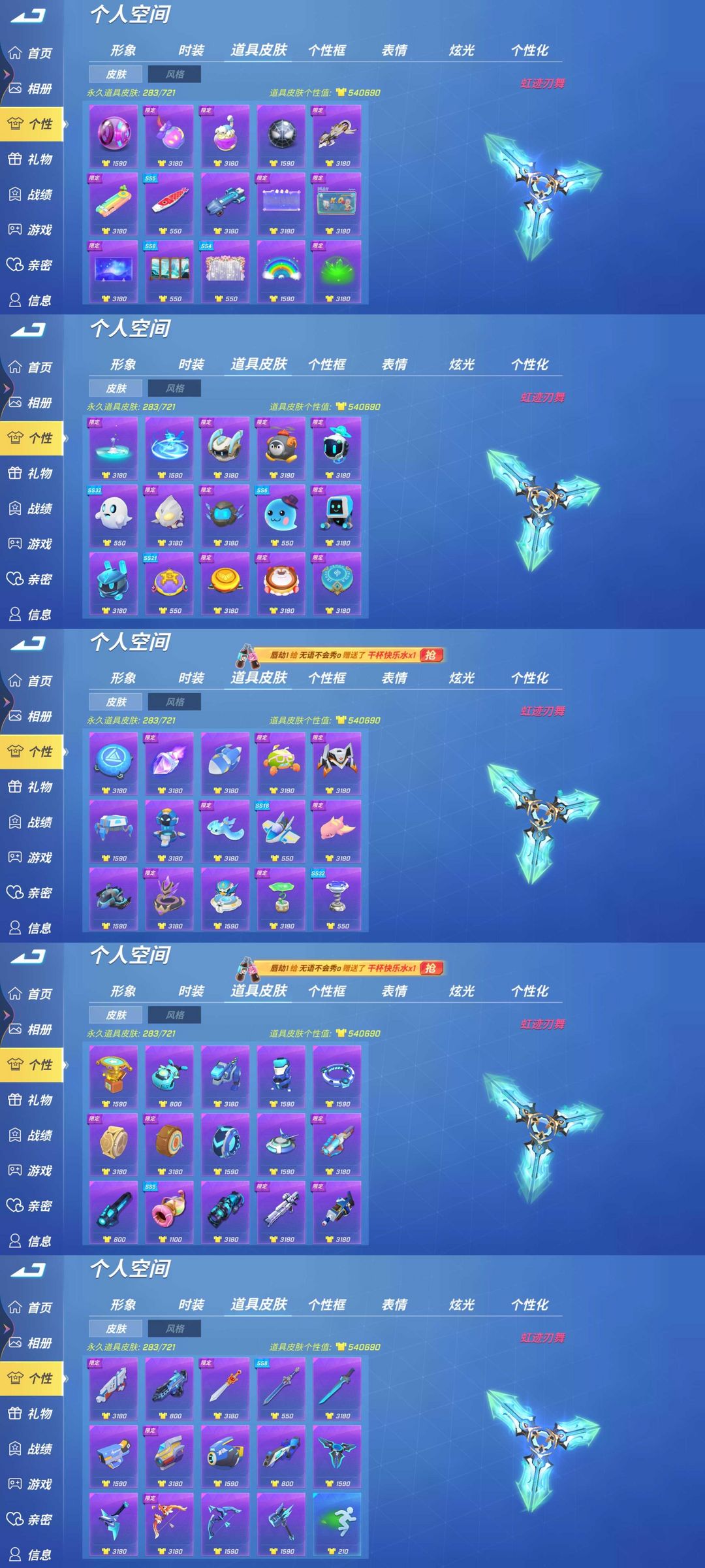 vivo♉1星耀♉96万个性♋虹迹刃舞♋手柄像素炮⛎梦想鲤鱼王⛎机龙咆哮♑法老之眼♑开天宝剑♉禁言